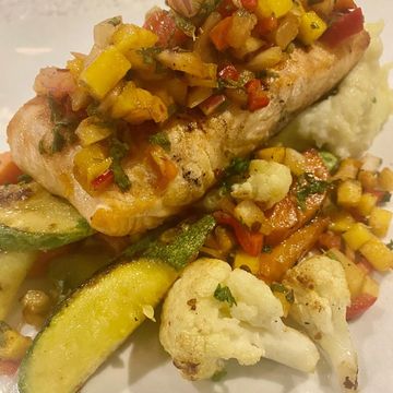 fresh grilled seasonal vegetables and house made mango salsa ~ 21.95