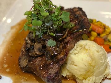 12 oz. grilled seasoned New York steak served with starch of the day and